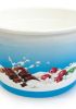 La grafica latte frutta azzurra raffigura un mare di latte bianco su uno sfondo azzurro cielo dal quale affiora una golosa tavoletta di cioccolato ed una manciata di sana frutta; può essere usata da sola o abbinata alle coppette per gelato con la stessa grafica ma di formati e colori diversi in modo da creare un vivace assortimento di coppette per gelato, piacevole da tenere esposto nel proprio locale e che facilita il servizio permettendo con un colpo d’occhio di riconoscere le misure a seconda del colore.