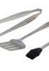 Questo elegante set da tre pezzi, realizzato in acciaio inossidabile, è composto da pinze, una spatola e una pennello in silicone.