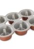 Stampo per 6 mini torte con maniglie che rendono semplice il sollevamento e il capovolgimento.